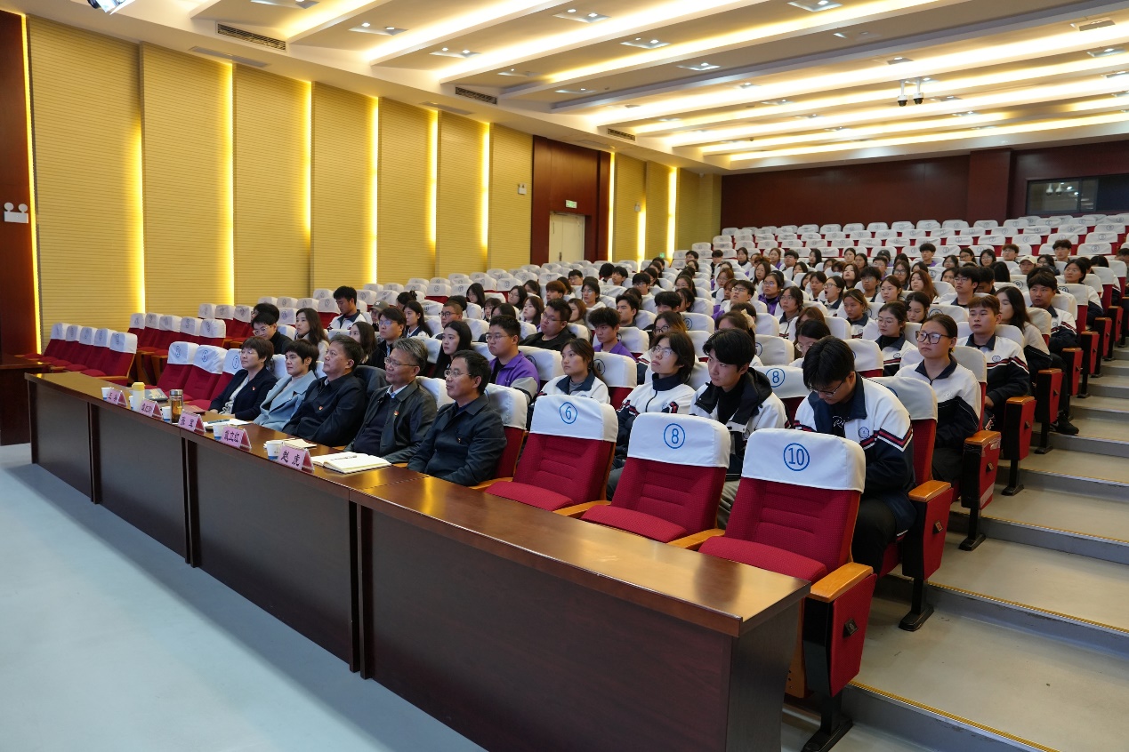 为深入学习贯彻党的二十届四中全会精神及习近平总书记关于加强高校思政课建设的重要指示精神,扎实推动领导干部讲思政课机制落地见效,11月6日,徐州市人大常委会副主任、党组副书记、一级巡视员刘广民以《在时代浪潮中锚定人生航向》为题,为我校师生讲授了一堂兼具理论深度、实践温度与时代高度的专题思政课。本次活动由我校党委副书记、校长张军主持,校党委副书记谭红玲,校党委委员、副校长赵虎,校党委委员、宣传部部长王冬,相关部门负责人和120余名师生代表现场聆听授课。